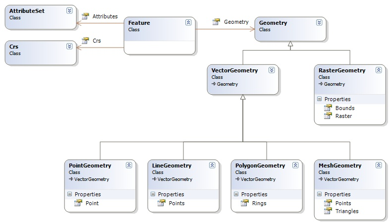 Carmenta Engine 5 introduces a new model for objects with a geographical position and it is displayed in the picture below.